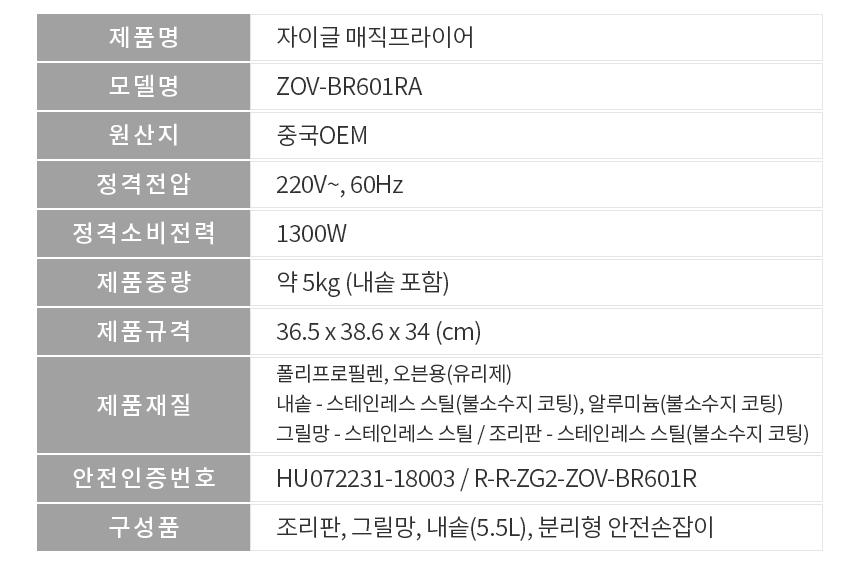 [특판] [자이글] 매직프라이어 ZOV-BR601RA