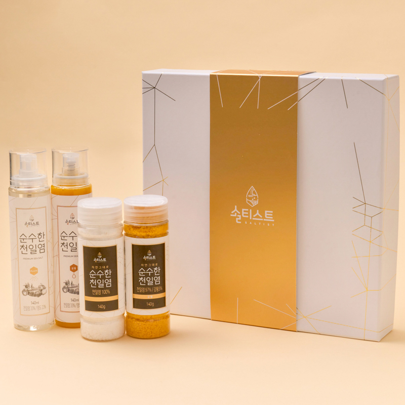 포장단위별 용량(중량), 수량 | 4종세트 : 플레인물소금140ml + 가루소금140g + 강황물소금140ml + 강황가루소금140g / 각 1ea 씩 |