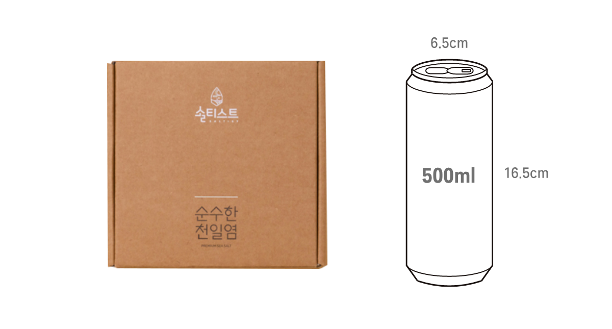 원재료명 및 함량 (농수산물의 원산지 표시에 관한 법률에 따른 원산지 표시 포함) | * 플레인물소금 : 정제수 67%, 천일염 33%(염도23%) * 가루소금 : 천일염 100% |