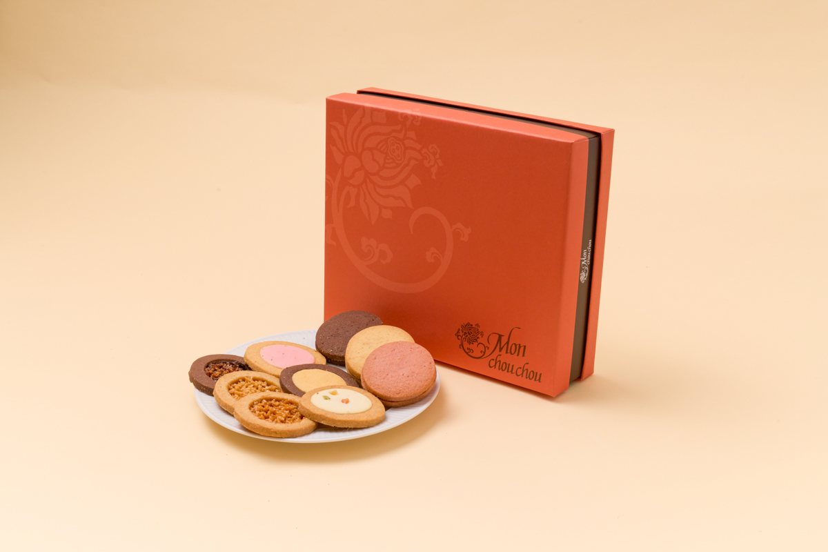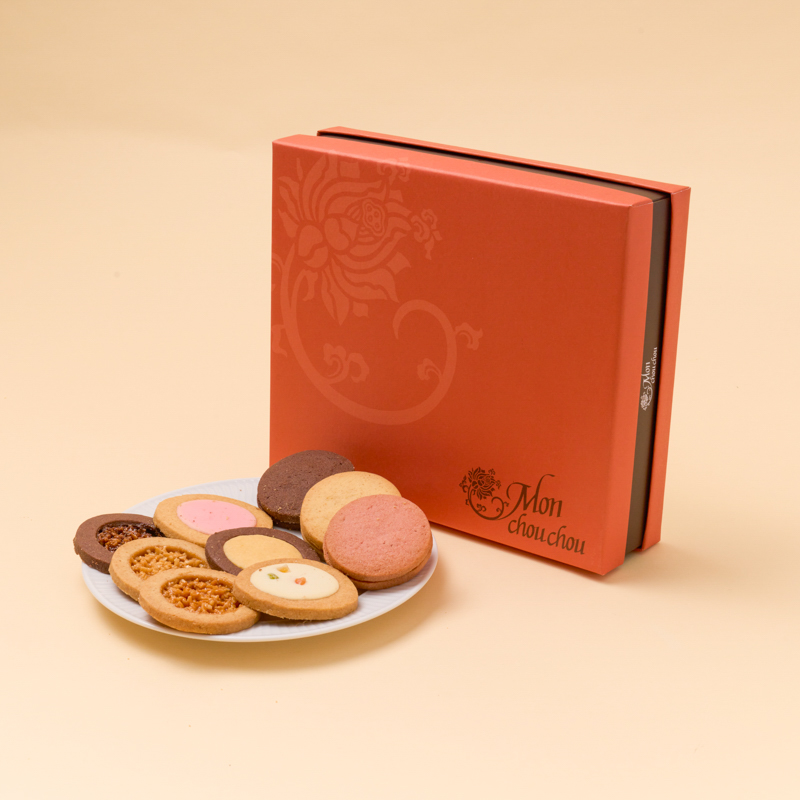 롤쿠키: 몽슈슈의 시그니처 제품인 롤케이크 모양을 따서 크림 대신 색깔 별로 달콤한 초콜렛을 넣어 다양하게 만든 쿠키
