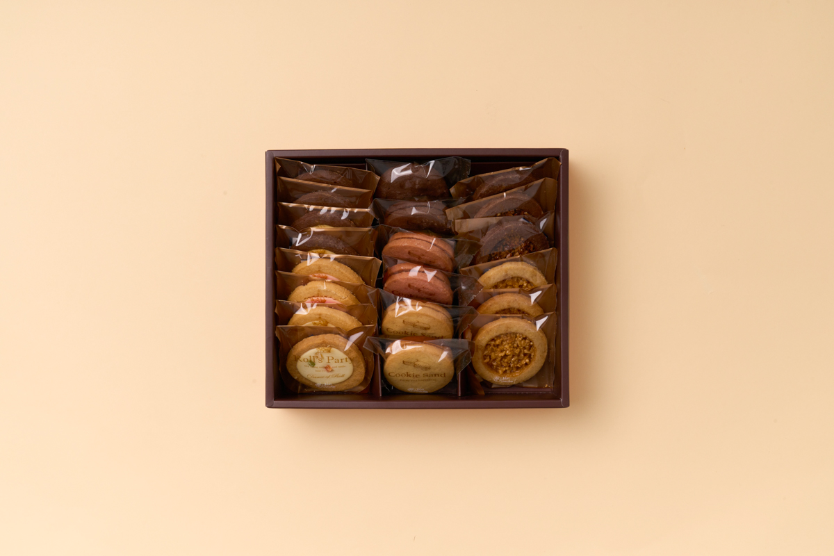 쿠키샌드: 바삭한 쿠키 사이에 크림을 샌드해서 바삭한 식감과 달콤한 크림맛을 느낄 수 있는 샌드 쿠키