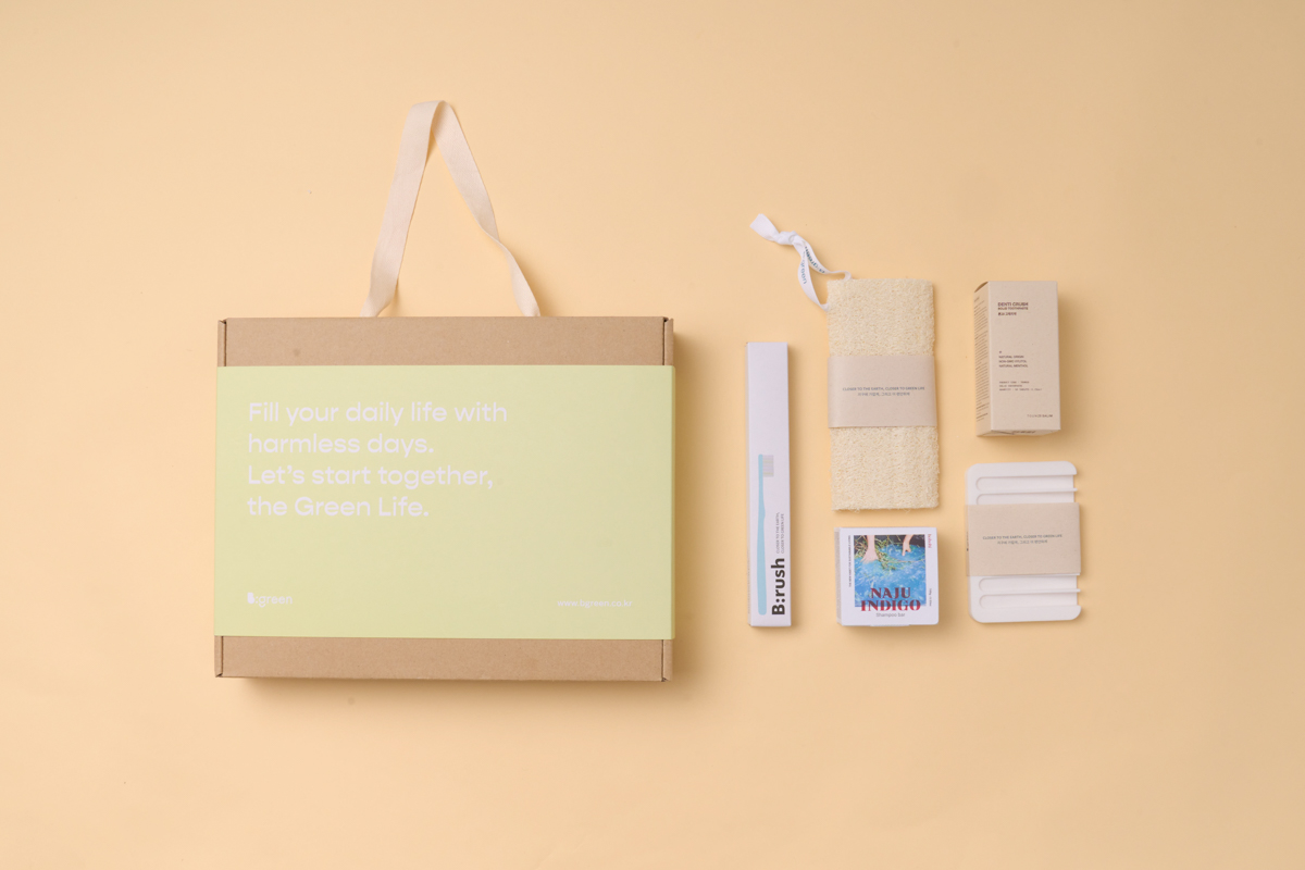 포장단위별 용량(중량), 수량 | 1. [비그린] B:rush 옥수수 칫솔: 국산 2. [비그린] 천연 루파 바디 스펀지: 중국산 3. [비그린] 삼베 비누망: 국산 4. [비그린] 실리콘 비누받침: 중국산 5. [호호히] 나주 인디고 샴푸바: 국산 6. [호호히] 장성 피톤 탑투토워시바: 국산 7. [톤28] 고체치약: 국산 |