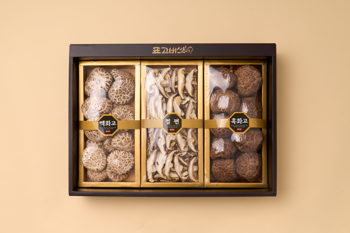 포장단위별 용량(중량), 수량 | 백화고(대) 170g + 흑화고(대) 170g + 절편 100g |